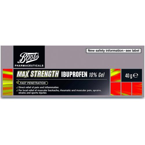 Boots Ibuprofen Gel Review . Take a look at our boots max strength ibuprofen 10% gel review and see why it scored 8.9 out of 10. Topical diclofenac gel (voltarol) is highly effective for treating muscle and joint aches and pains. Adults & children aged 12 years & over active. Patients should not apply more than 500mg ibuprofen. Boots max strength ibuprofen 10% gel for direct relief of pain and inflammation. If you still prefer to use an ibuprofen gel, however, you can find them on boots.com. Take a look at our boots pharmaceuticals ibuprofen 5% w/w gel review and see why it scored 9.3 out of 10. Use up to four times daily with individual doses administered at least 4 hours apart.