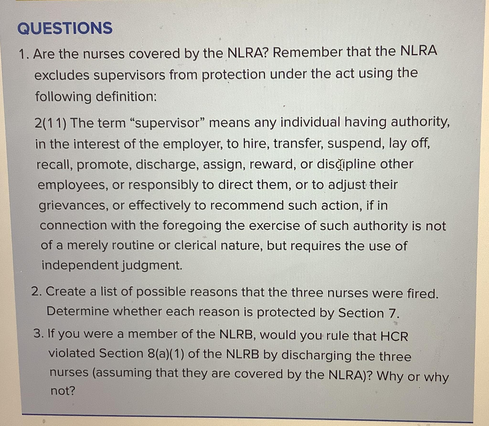 Solved QUESTIONSAre the nurses covered by the NLRA? Remember