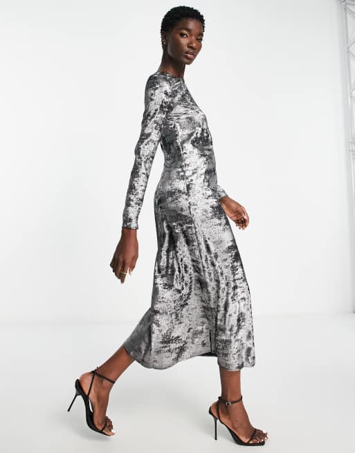 River Island satin slip maxi dress in silver ASOS
