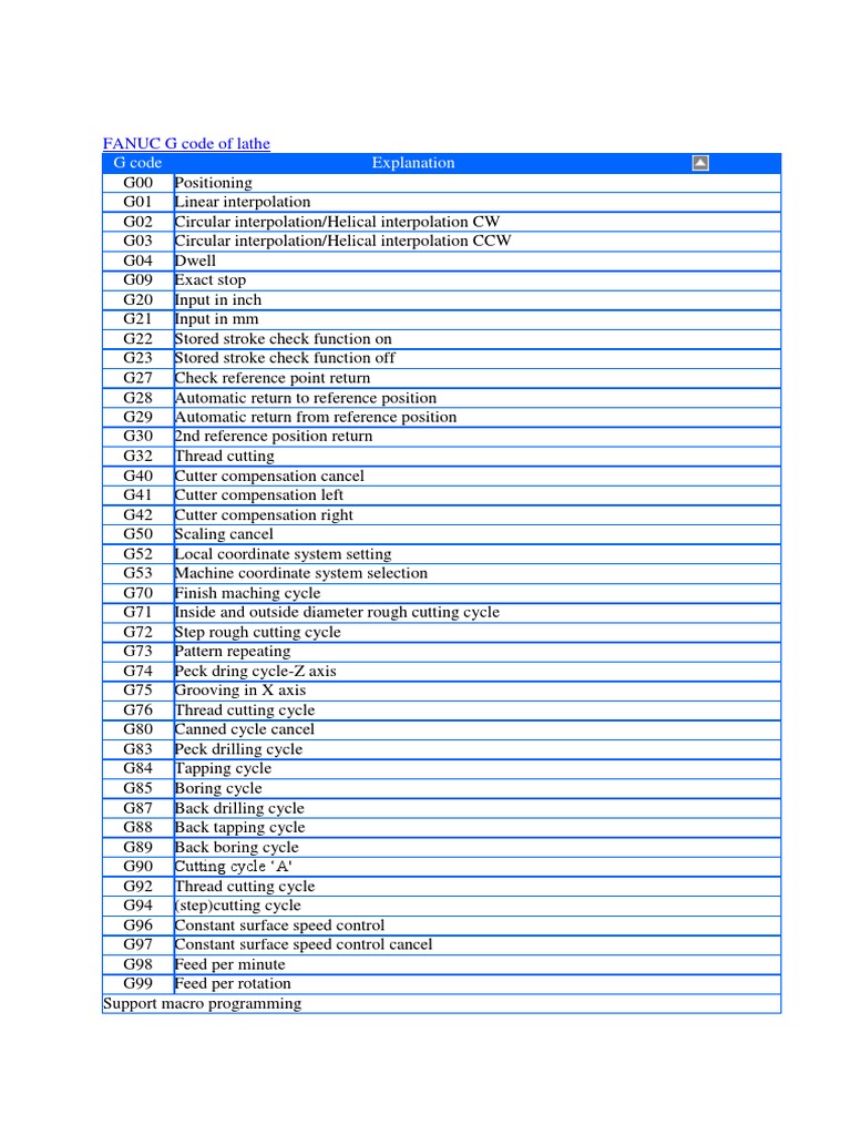 CNC Machine G Codes and M Codes full explanation tutorial Lathe G Code Drilling Cnc fanuc control has a very powerful and versatile peck drilling cycle (fanuc g74) which relieves us. As such, it is better suited to deep hole drilling than the g73 cycle. The g83 peck drilling cycle retracts above the surface of the component after each peck. Here is a cnc programming example for simple drilling on a cnc lathe machine.. Lathe G Code Drilling.