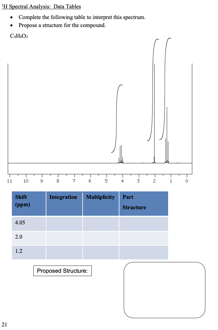 Solved . 'H Spectral Analysis Data Tables Complete the