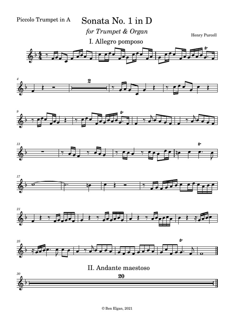 Purcell Sonata Piccolo Trumpet in A PDF Musical Compositions