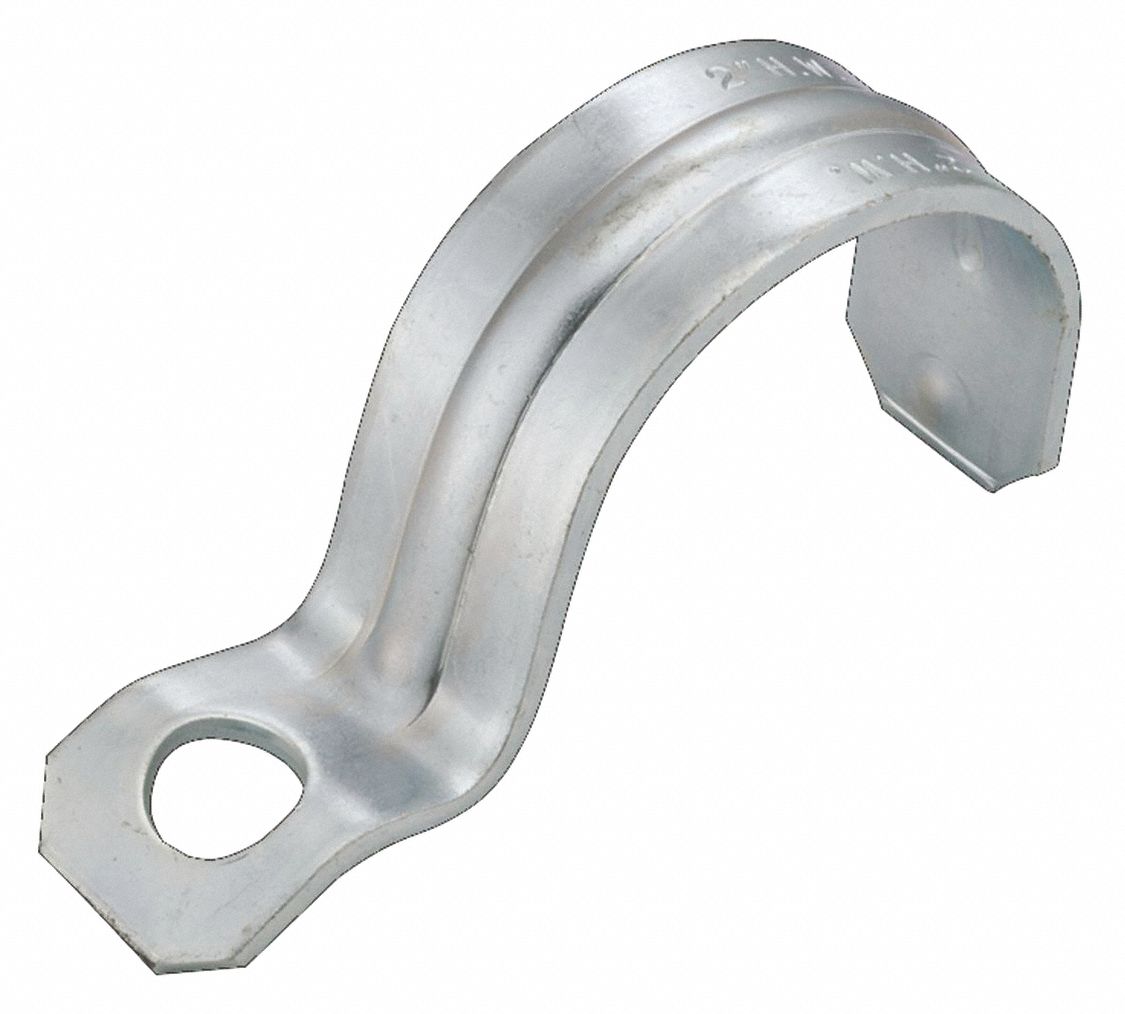 RACO One Hole Conduit Strap, Conduit Straps, Steel, 2 in, Zinc 206F30 Zinc Conduit Hanger neer™ conduit hangers with bolts and nuts application • secure and suspend rigid conduit, imc, emt or pvc. conduit hangers are used to secure and suspend emt, pvc, or rigid conduit in overhead applications. Pipe clamps & base plates; size #1 steel conduit hanger with bolt for securing 3/4” electrical metallic tubing (emt) or 3/4″ rigid conduit. Zinc Conduit Hanger.