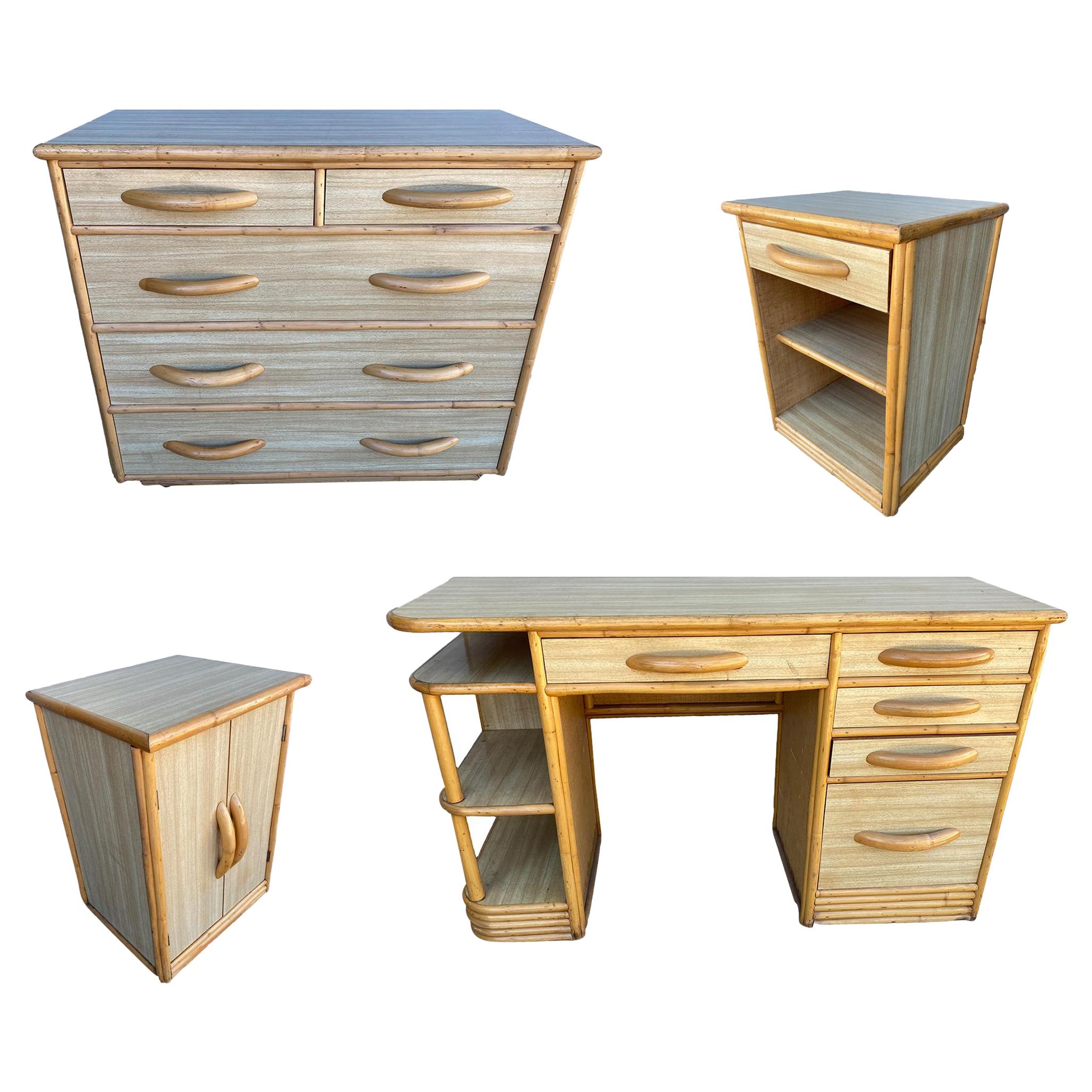 Midcentury Formica and Rattan Bedroom Set with Rattan Pulls at 1stDibs