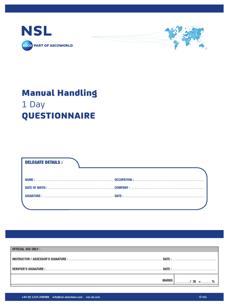 ManualHandlingChecklist.doc Safety Business Manual Handling Quiz See your score and share it. Learn about hazards, injuries, and. Put your knowledge to the test with our manual handling general. Test your knowledge of manual handling with this quiz! Do you think you know how to handle heavy items safely? Learn about manual handling, the most common cause of workplace accidents, by taking this online quiz with questions. Manual Handling Quiz.