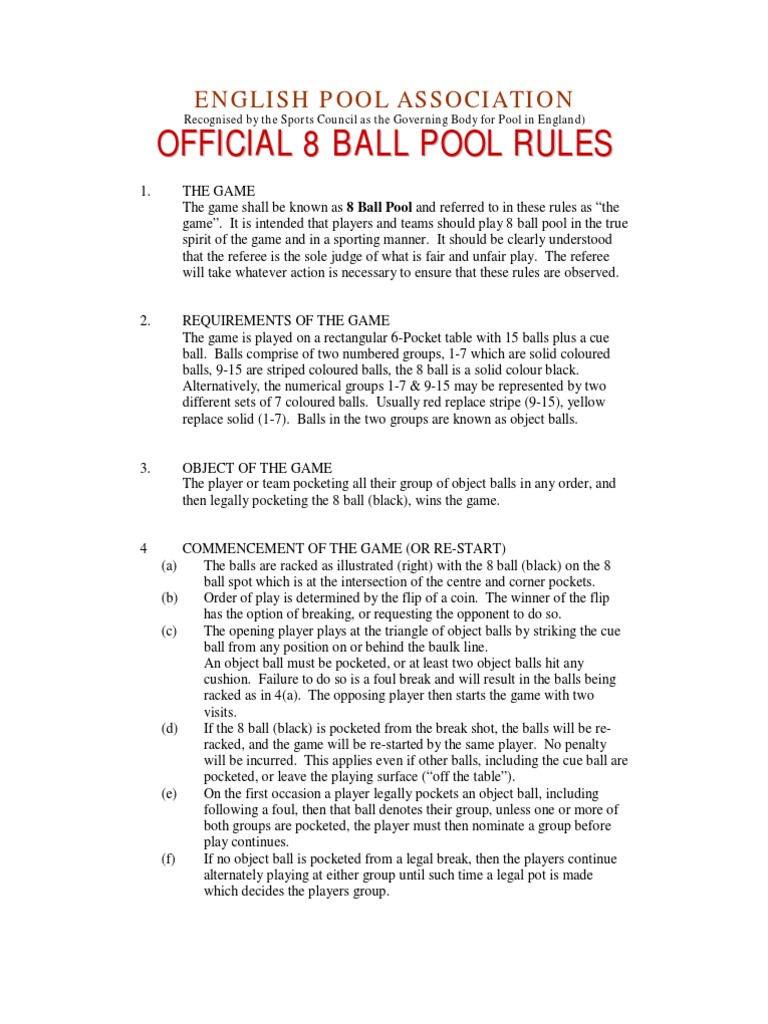 Rules Pool (Cue Sports) Sports Rules And Regulations