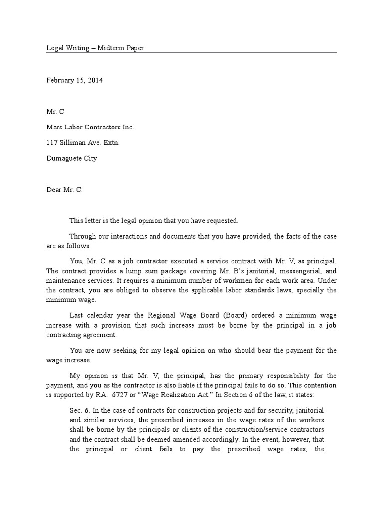 Sample Legal Advice Independent Contractor Employment