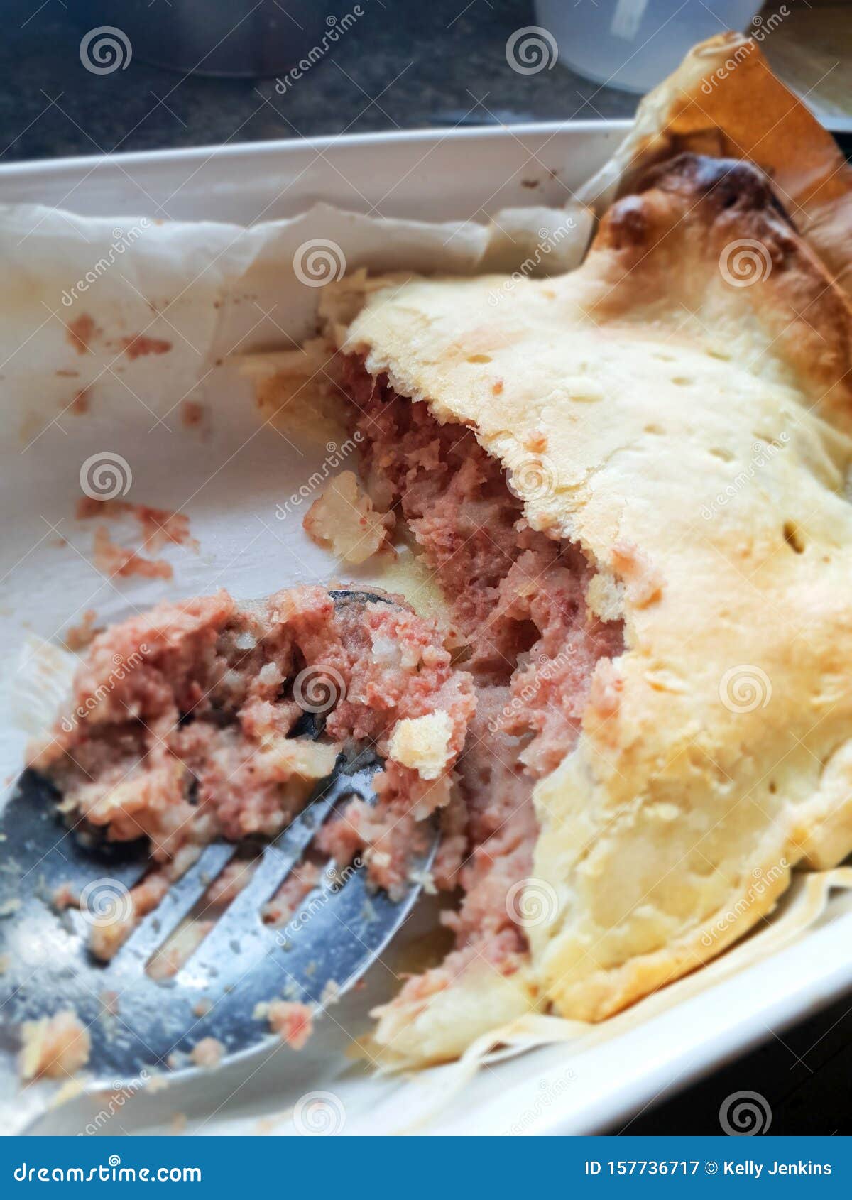 Half Eaten Corned Beef Pie stock image. Image of cooking 157736717