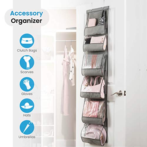 ZOBER Purse Organizer For Closet Over The Door Purse Organizer W/ 6