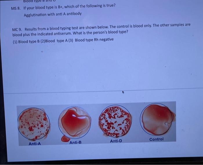 Solved MS 8. If your blood type is B+, which of the
