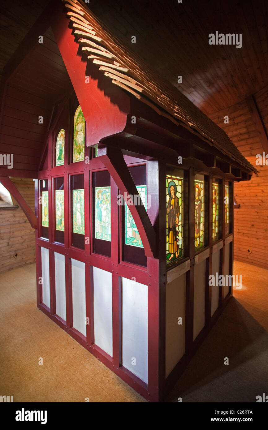 Chapel with Stained glass window at Castell Coch Cardiff Wales UK Stock