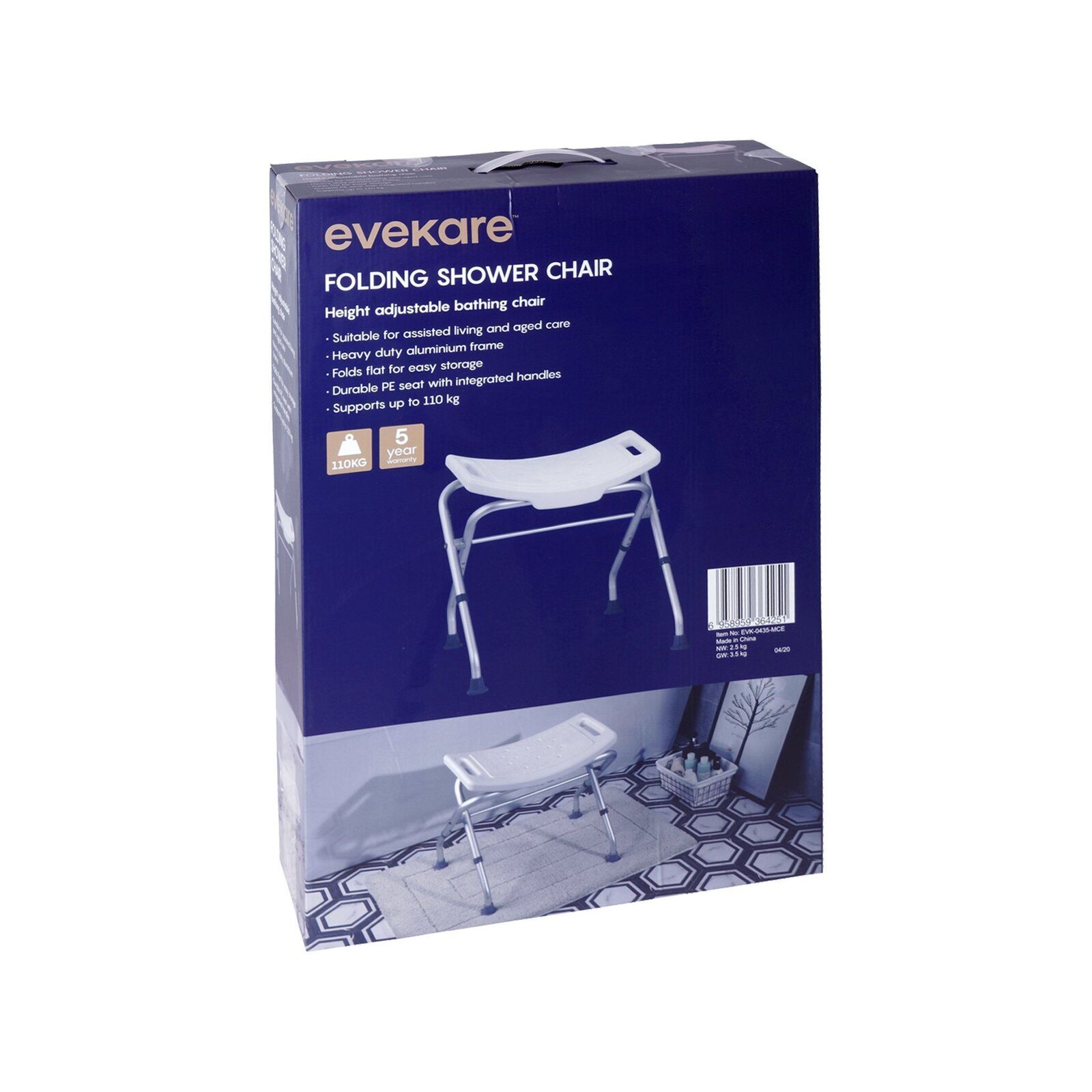 evekare Height Adjustable Folding Shower Chair Bunnings Australia