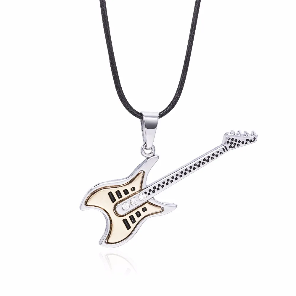 Fashion Music Guitar Stainless Steel Pendant Necklaces For Mens Cool