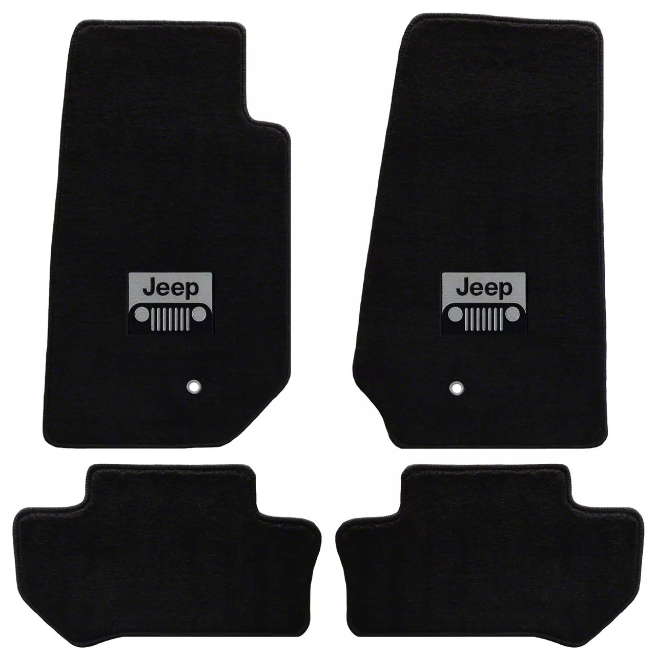 Lloyd Jeep Wrangler AllWeather Carpet Front and Rear Floor Mats with Jeep Grille Logo; Black