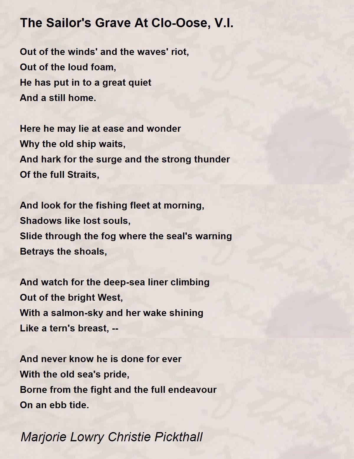The Sailor's Grave At CloOose, V.I. Poem by Marjorie Lowry Christie