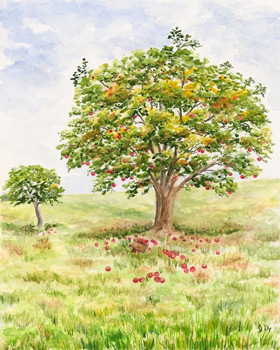 Apple Tree Art Apple Tree Watercolor Painting Print. Apple Etsy Painting Apple Trees How to paint an apple blossom in watercolour. Then, add some white clouds. These are the types of trees that especially need their trunks painted: Pluots, apples, pears, cherries, and plums too. I produced the 20 paintings that won me an rhs gold medal. In 2006 i spent a whole year documenting one season of the little apple tree in. Painting Apple Trees.