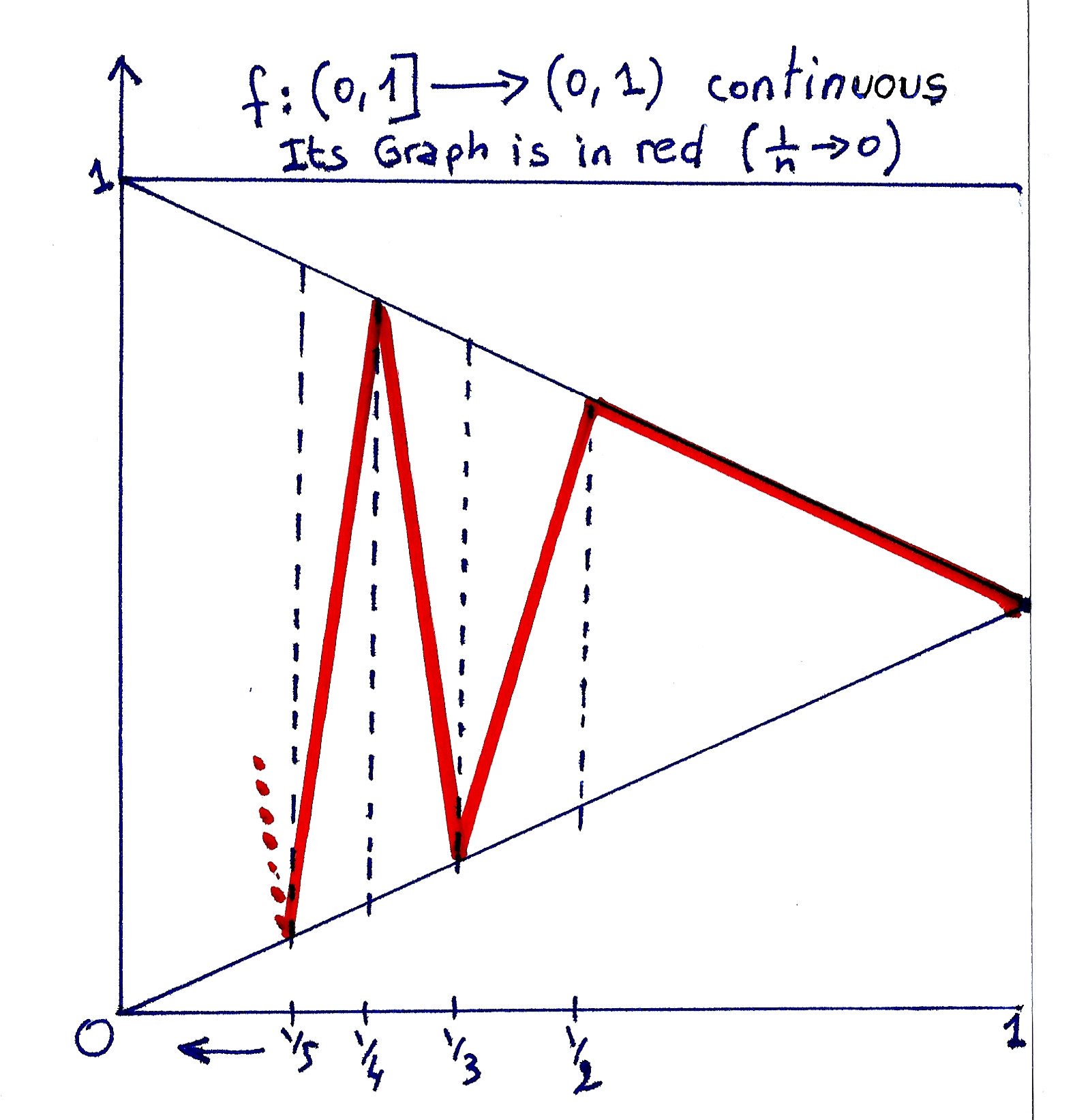 real analysis Continuous function from (0, 1] onto (0, 1