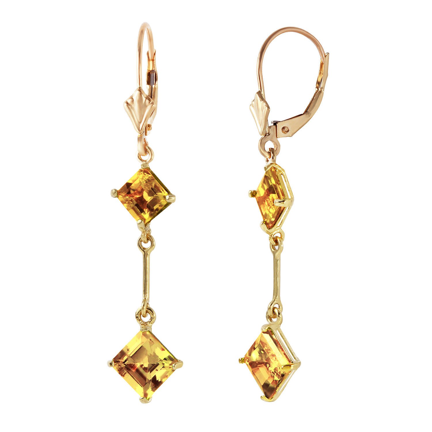 3.75 CTW 14K Solid Gold Leverback Earrings Citrine