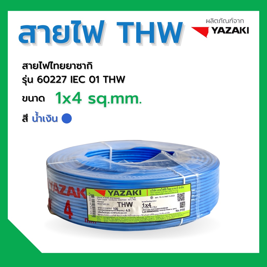 YAZAKI สายไฟ THW (IEC01) 4 sqmm. (100mม้วน) 450750V 70C Solid and