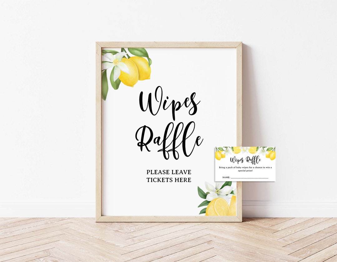 Lemon Baby Wipes Raffle Editable Sign and Tickets Template, Lemon