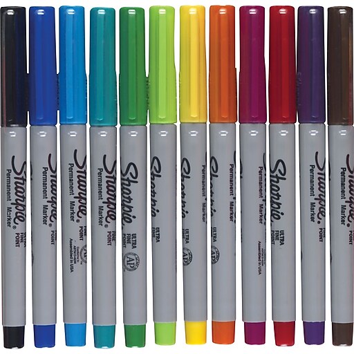 Sharpie Permanent Markers, UltraFine Point, Assorted Colors, 12 Pack Staples