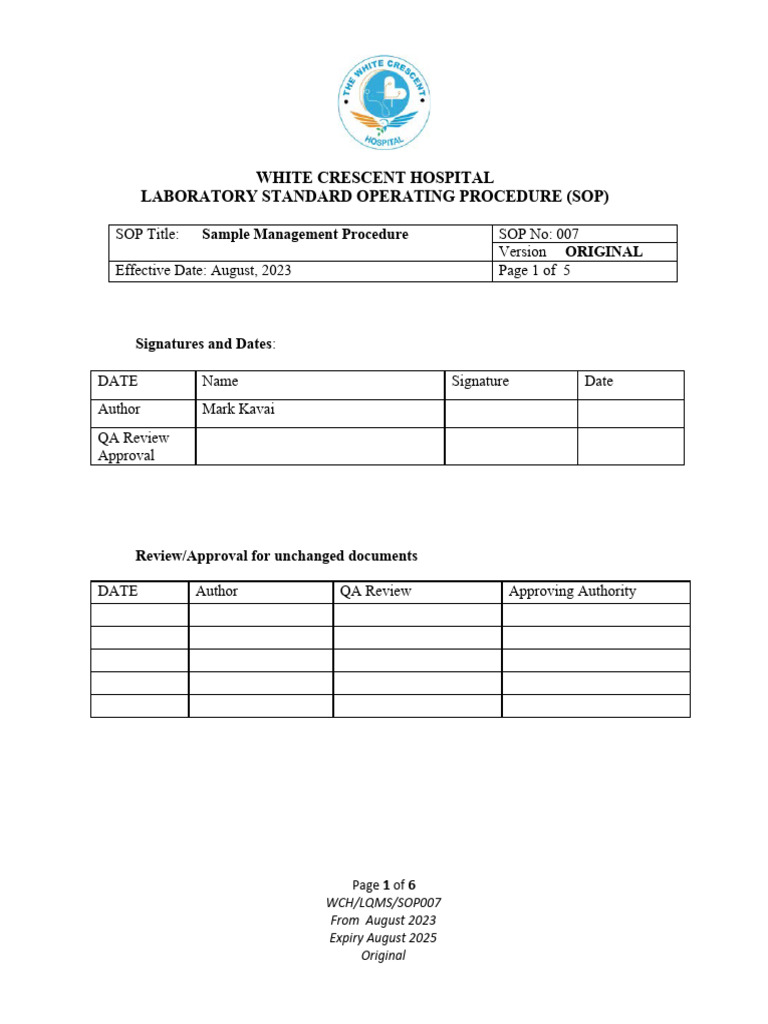 Sample Management SOP PDF Quality Assurance Laboratories