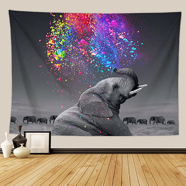 Funny Animal Wall Tapestry Elephant Rainbow Colorful Art Etsy