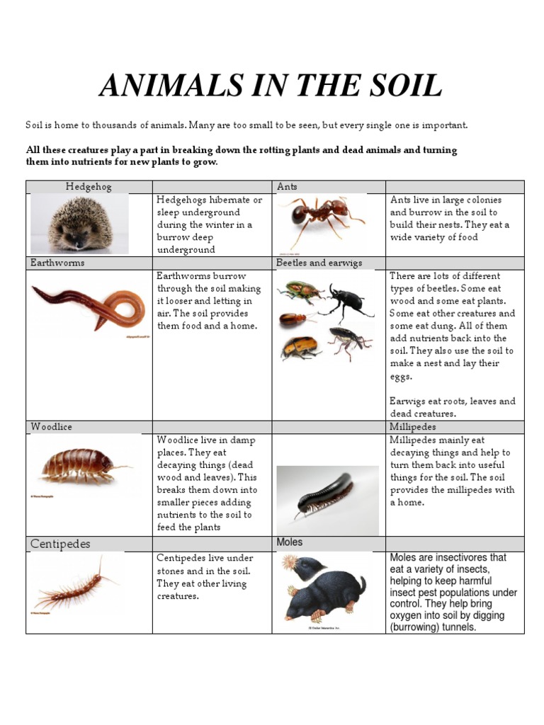 Animals That Burrow Worksheet for kids What Animal Lives In The Soil Feeding of soil animals supports vital soil functions. Feeding on dead organic matter (detritivory, brown) regulates decomposition, carbon sequestration and supports. Soil organisms, which range in size from microscopic cells that digest. They also aid in decomposition, nutrient cycling, and supporting plant growth. A study estimates that more than half of all earth's. Soil organism, any organism inhabiting the soil. What Animal Lives In The Soil.