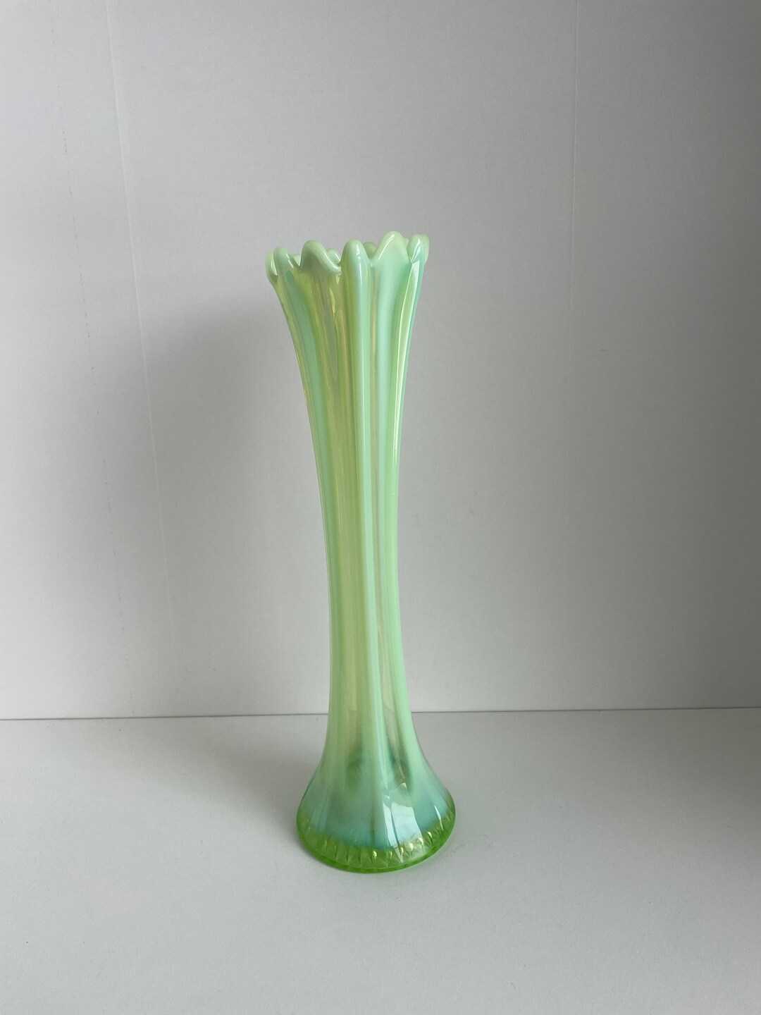 Vintage 13 Tall Opaline Swung Glass Vase Antique Etsy