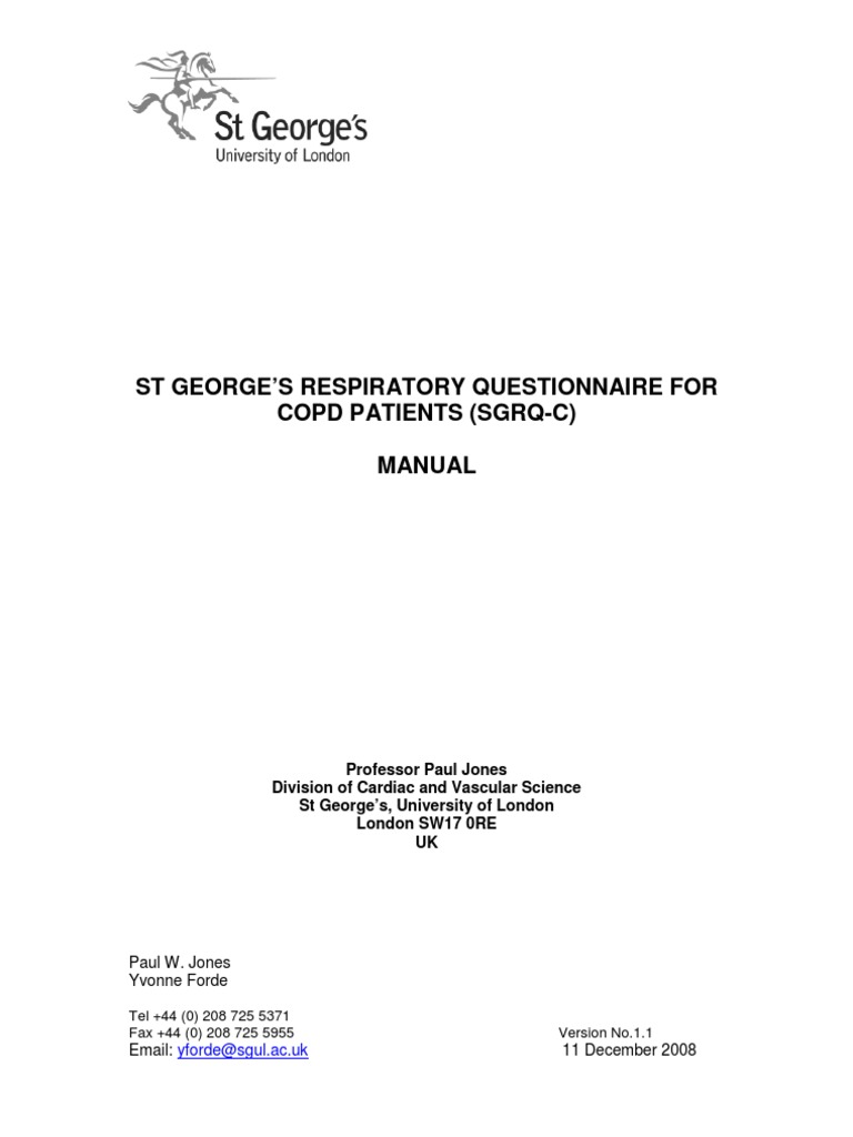 Respiratory Questionnaire Manual PDF Spreadsheet St George Respiratory Questionnaire Pdf george’s respiratory questionnaire (sgrq) this questionnaire is designed to help us learn much more about how your breathing. What is the st george’s respiratory questionnaire? The sgrq is designed to measure health. George’s respiratory questionnaire (sgrq) is designed to measure health impairment in patients with asthma and. George’s respiratory questionnaire, sgr page 4 of 4 12) these are questions. St George Respiratory Questionnaire Pdf.