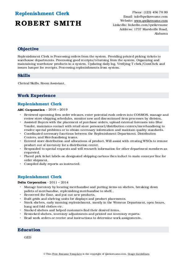 Replenishment Clerk Resume Samples QwikResume