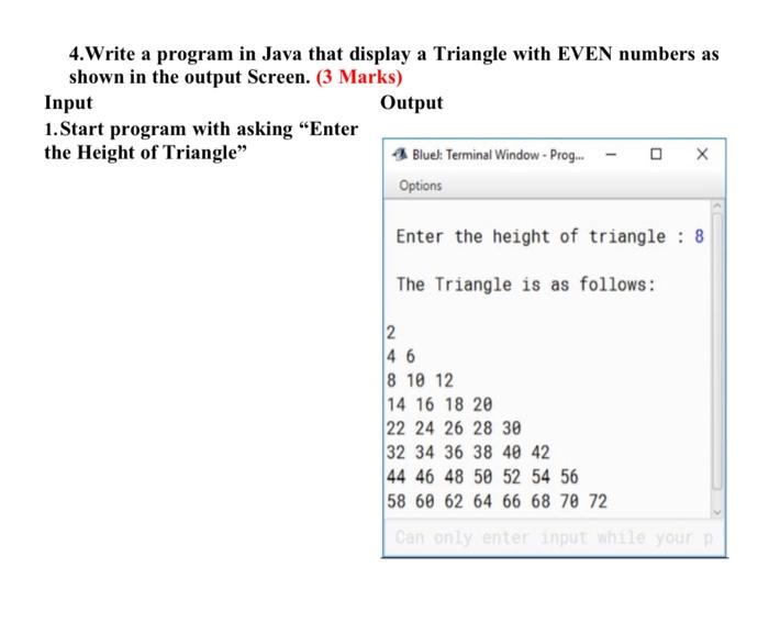 Solved 4.Write a program in Java that display a Triangle