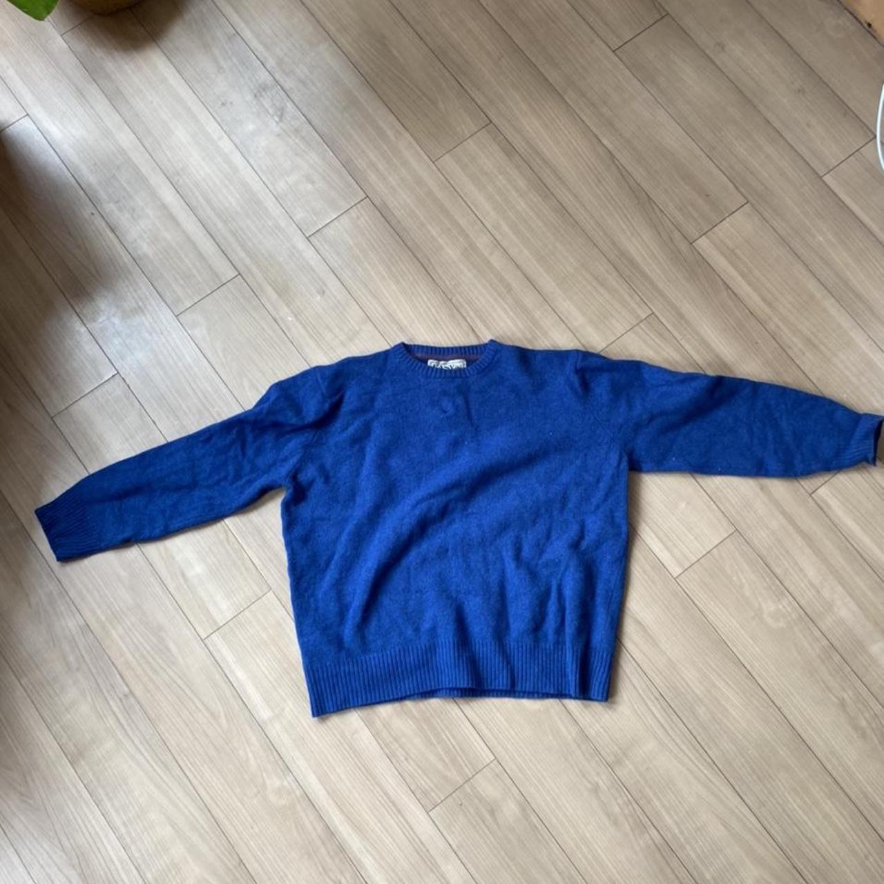 Vintage blue woollen jumper. Shrunk in wash so even... Depop
