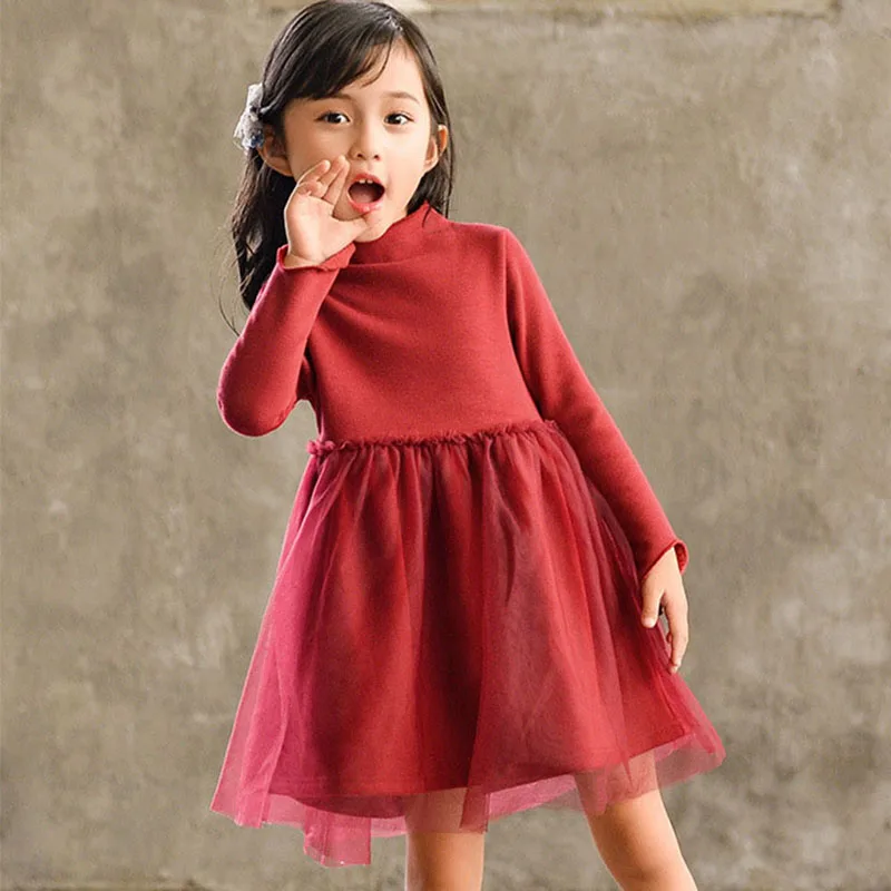 mesh patchwork fleece dresses for teenage girls winter warm party dress
