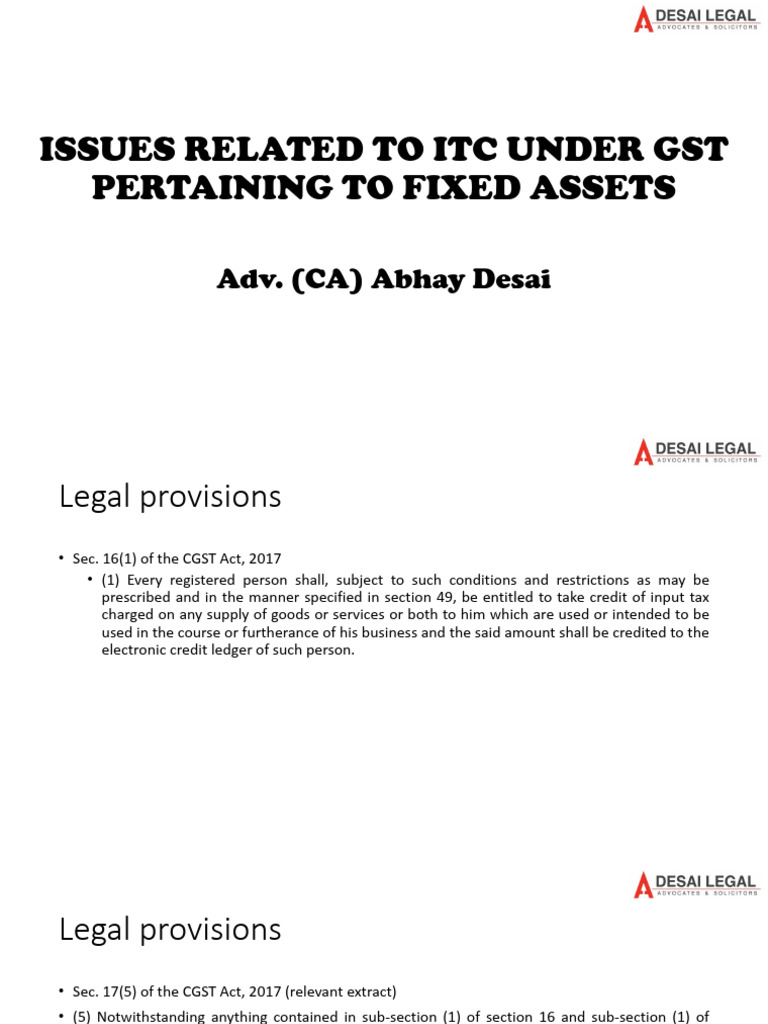 03OCT23 ITC ON Fixed Assets PDF Fixed Asset Property