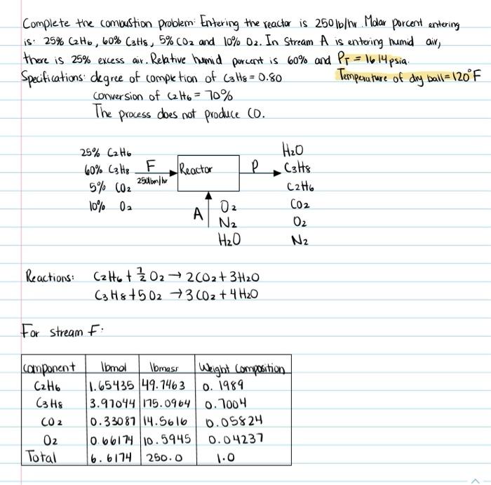 Solved Complete the combustion problem Entering the reactar