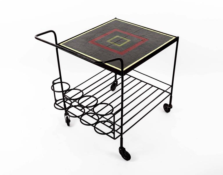 Metal and Tile Bar Cart For Sale at 1stdibs