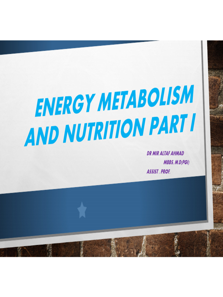 Energy Metabolism and Nutrition I PDF Fat Food Energy