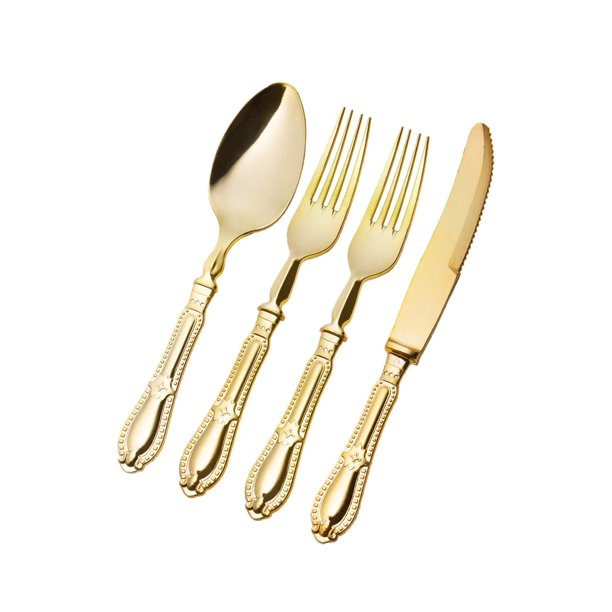 Gold Silverware Plastic Buy jl prime 120 gold reusable plastic silverware. Free delivery and returns on eligible orders. This fancy plastic silverware set has a gold finish that will outshine any white or clear plastic flatware set. Check out our plastic gold silverware selection for the very best in unique or custom,. 32 knives, 64 plastic spoons. Rubtlamp 96 pcs gold plastic silverware,. Gold Silverware Plastic.