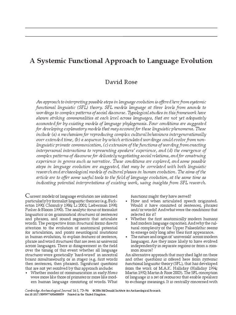 A Systemic Functional Model of Language Evolution PDF PDF