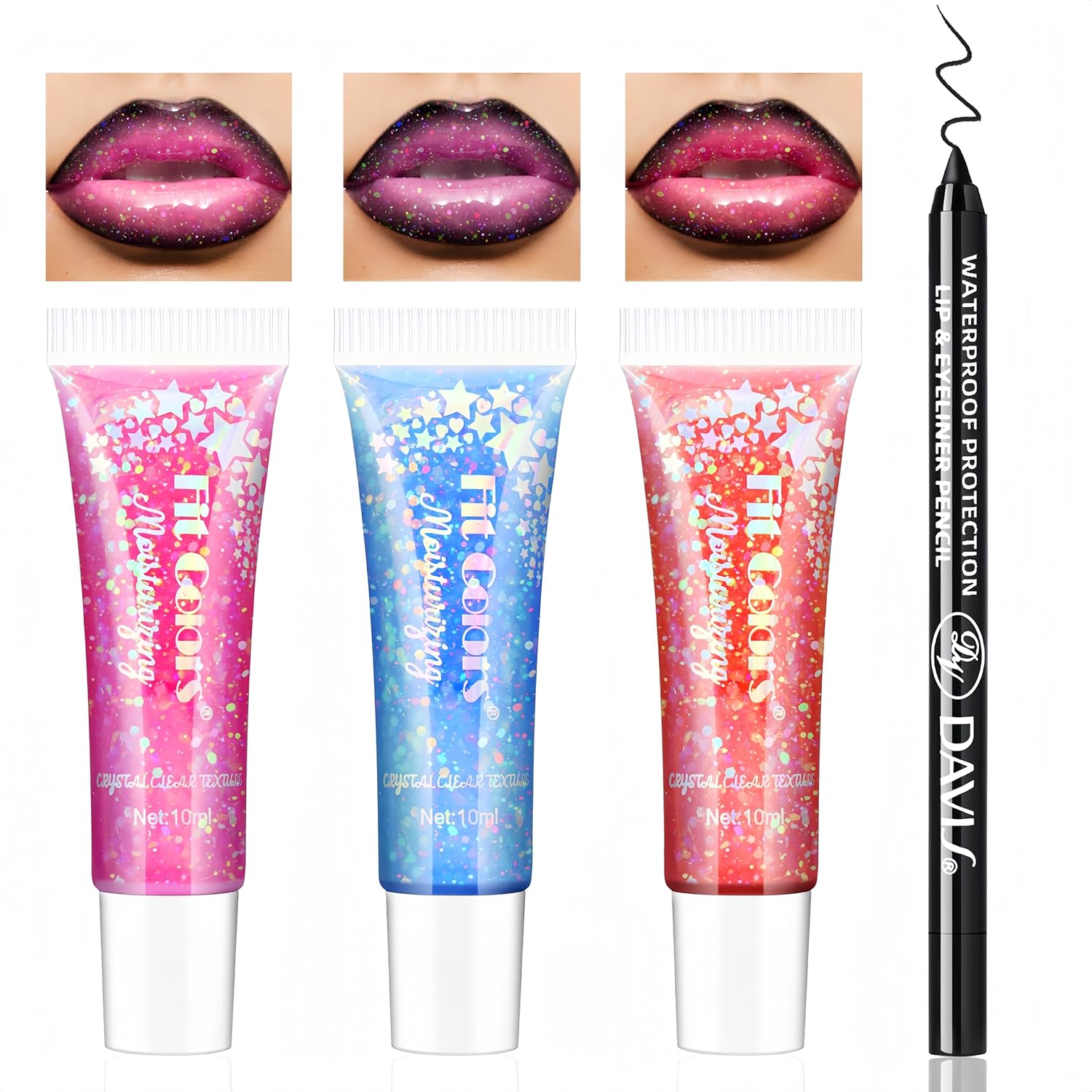 HOSAILY 3Pcs Glitter Color Changing Lip Oil with Black Lip