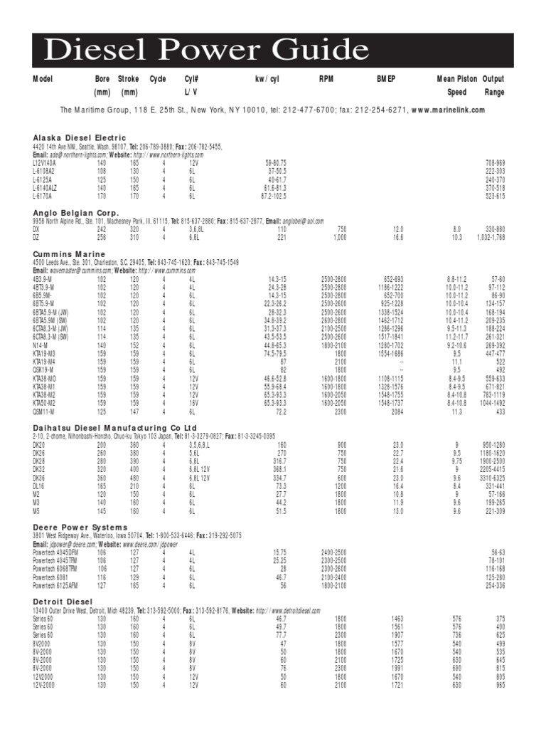Diesel Engine Power Guide of Various MARINE ENGINES Diesel Engine