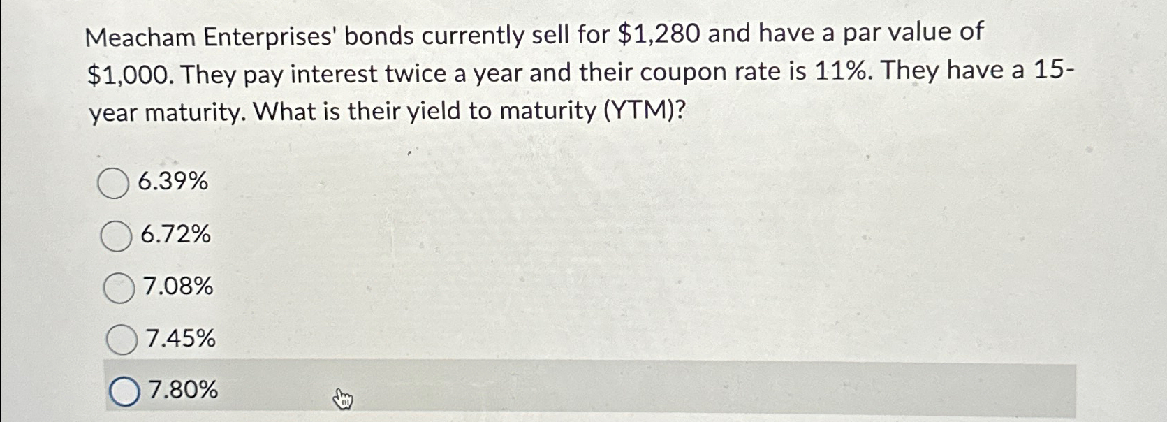 Solved Meacham Enterprises' bonds currently sell for 1,280