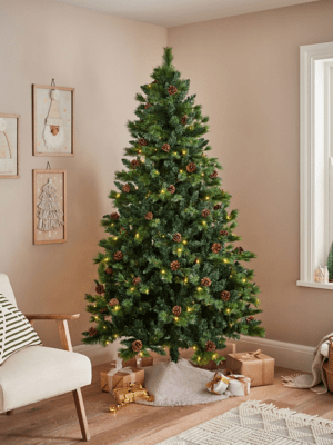 Green Berry & Cone PreLit Christmas Tree 7FT Christmas at ASDA
