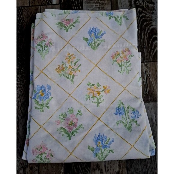 jcpenney Bedding Vintage Flat Twin Sheet Cross Stitch Floral Quilt