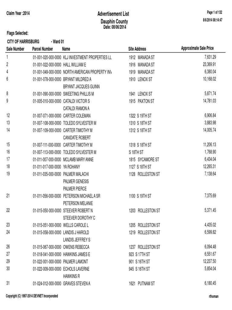 Dauphin County taxsale list 2014 Civil Law Law) Property Law