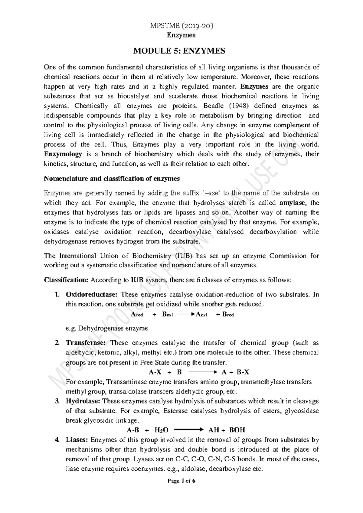 EOB Mod5 Enzymes1 nmims ka hai Enzymes MODULE 5 ENZYMES One of