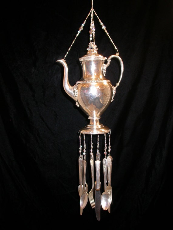 Silver Teapot Wind Chime Silverware Wind Chime Repurposed Silver Teapot Wind Chimes If the idea of making your own wind chimes appeals to you, you are in luck: These adorable recycled teapot wind chimes add a little whimsy outdoors during the spring and summer. Check out our silver teapot wind chimes selection for the very best in unique or custom, handmade pieces from our wind chimes shops. This beautiful wind chime was. Silver Teapot Wind Chimes.