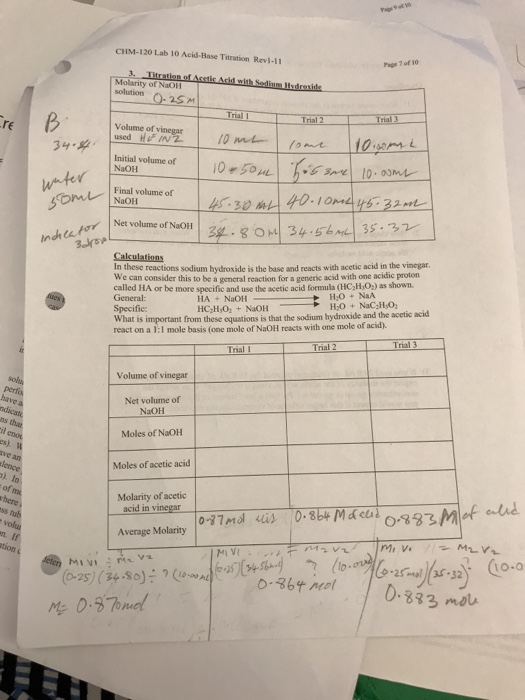 Solved CHIM120 Lab 10 AcidBase Titration Revi11 Molarity