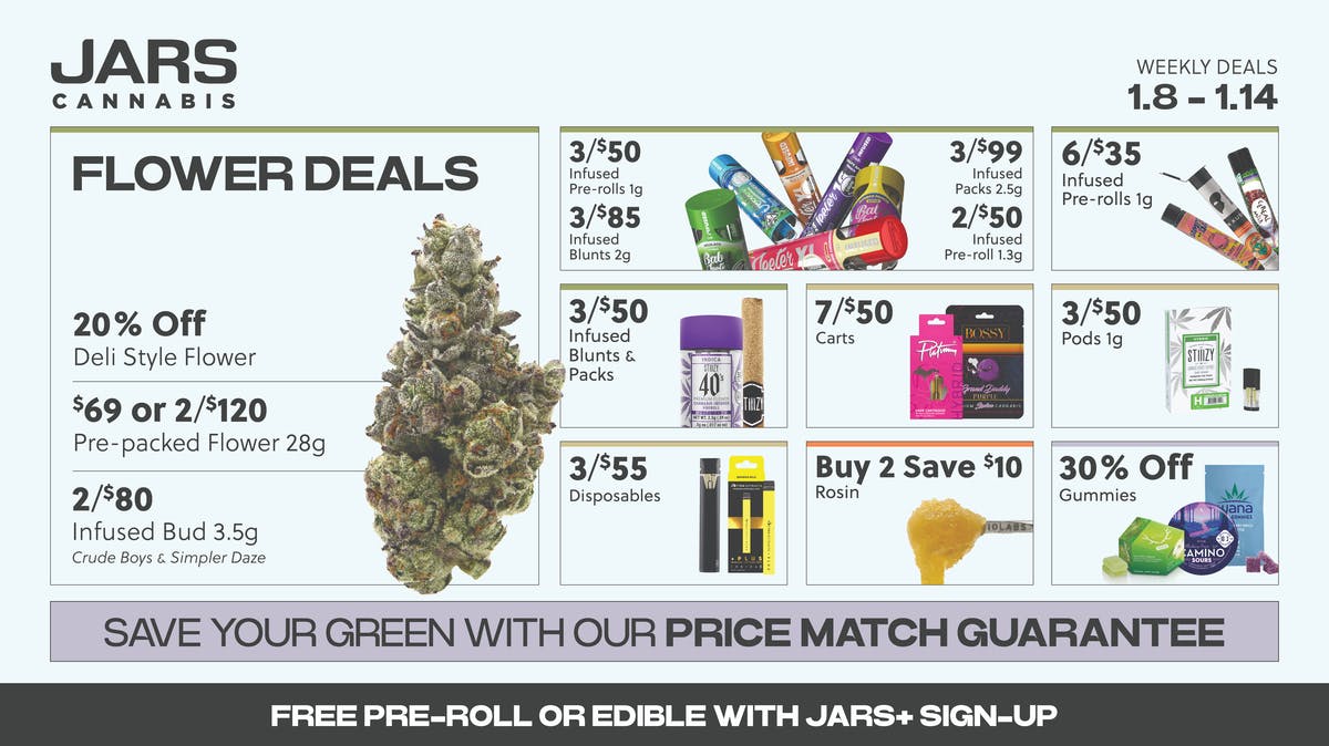 JARS Cannabis Weekly Deals at JARS Cannabis Mt Clemens Weedmaps Jars Mt Clemens Yes, i am at least 21 years of age or am otherwise a qualified patient. Jars cannabis is a cannabis retailer in macomb county, mi, offering a wide range of products, from flower to edibles, at affordable prices. 4.9 star average rating from 993 reviews. $$ cannabis dispensaries, head shops, vape shops. Jars cannabis is a recreational and medical dispensary. Jars Mt Clemens.